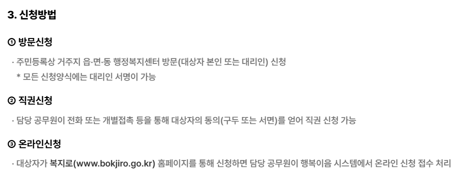 | 신청 방법 | 주민센터 방문 또는 복지로 온라인 신청 |