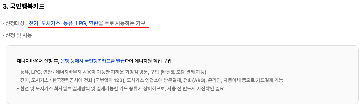 - 등유, LPG, 연탄 등 사용 시 카드 결제