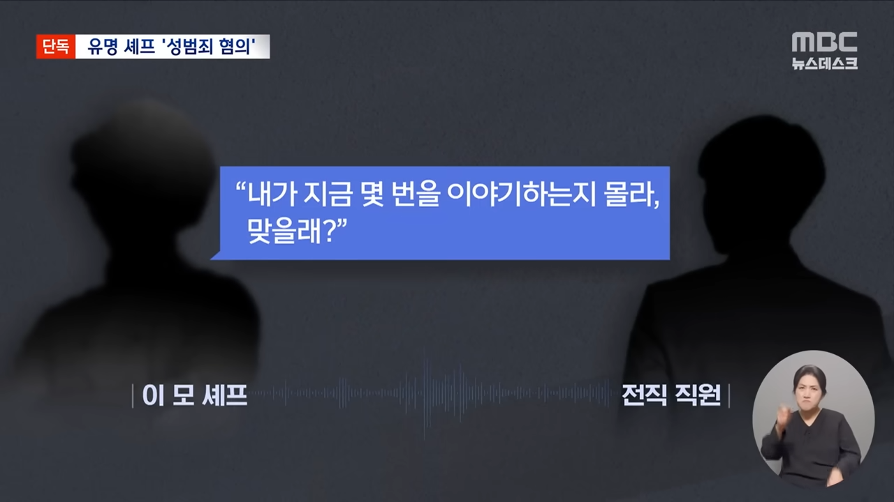 해당 셰프는 혐의를 전면 부인하고 있으나, 현재 경찰 조사가 진행 중입니다.