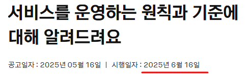 - 시행일: 2025년 6월 16일부터 적용됨